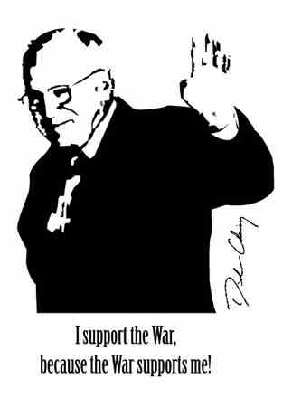 Price: $22.00 Availability: Mid September 2006 Now you can show people why we fight wars; corporate greed. We've been fortunate to have Dick Cheeney sponsor a T-Shirt for FuckTheMedia. Signed by the man himself, Dick has nothing on war profiteering! Free Shipping included! |